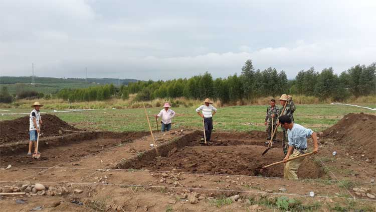 工人在挖掘探方