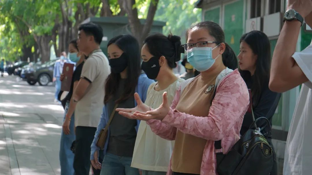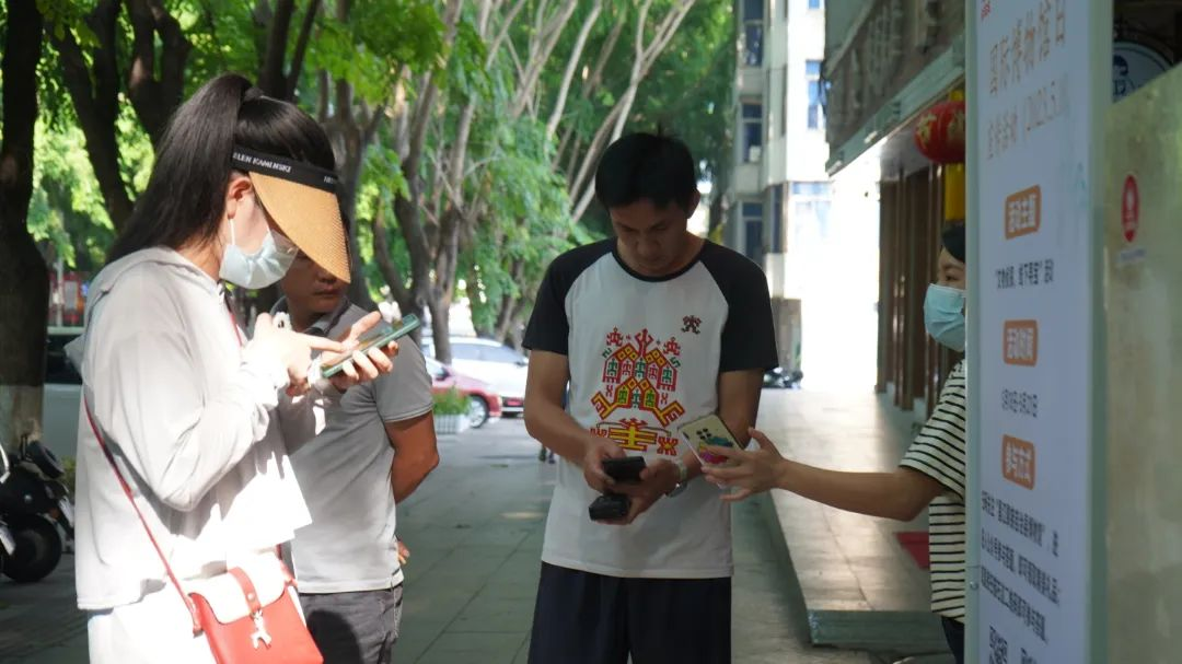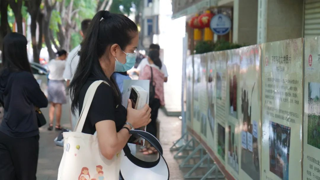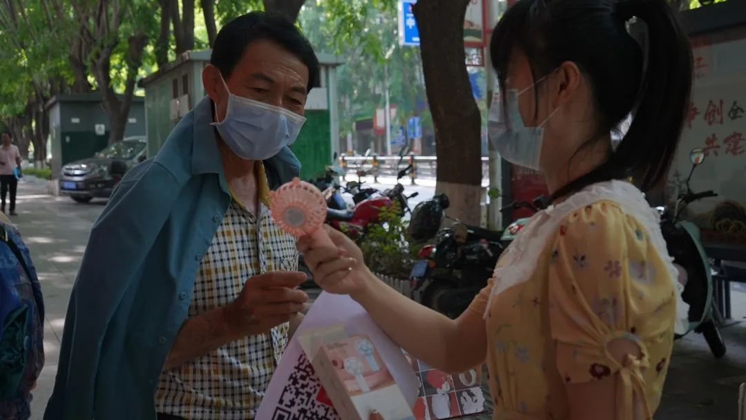 图片展现场准备了手持小风扇,参观群众免费领取。