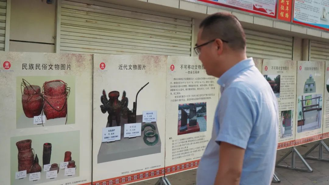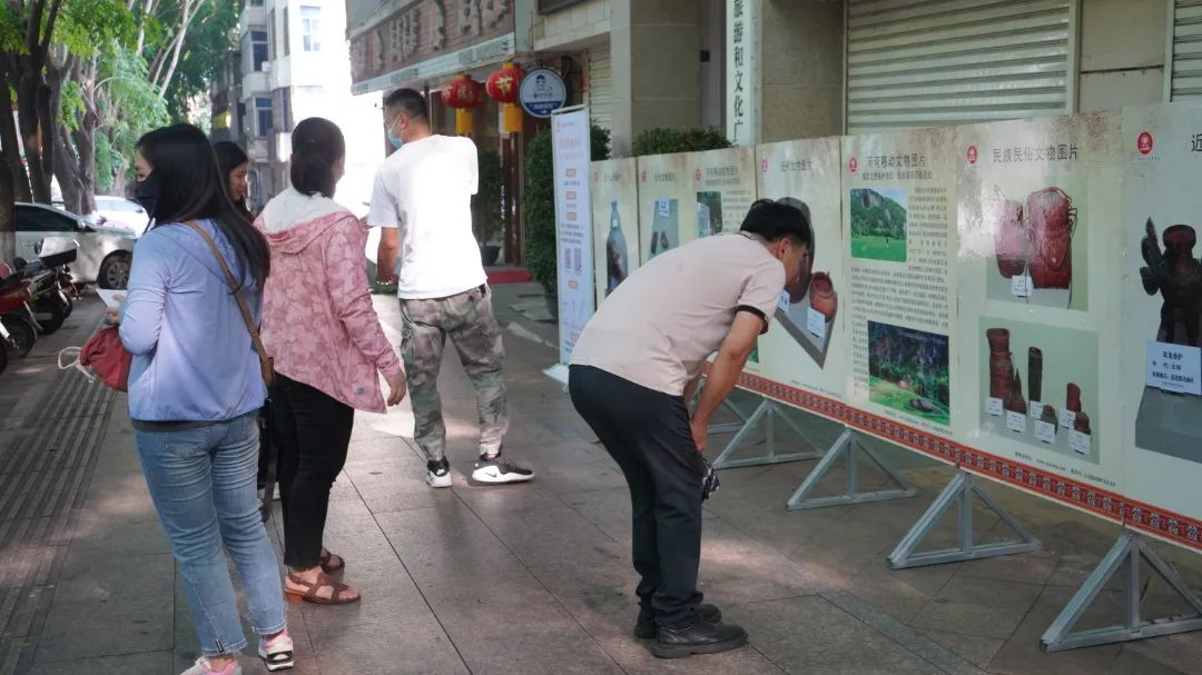 活动当日,我馆开展线下图片展活动,工作人员为群众讲解文物宣传图文展板,发放博物馆宣传材料,达到了人人热爱文化,人人保护文物的宣传效果。