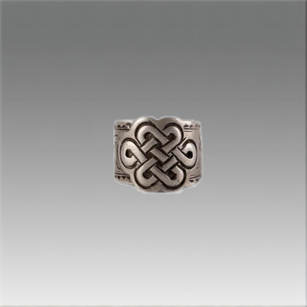 盘长纹(结)是中国传统结饰的典型代表,也称吉祥结,即线条曲折回转、首尾相连、无限循环的几何纹样,其表现形式是用一条不断头的绳进行编结,经过规律的穿插、盘缠、连接,形成的错落有致的结扣,蕴含着无始无终、无终无结的意境,而这项传统纹样的产生,则与华夏民族远古时期的绳结工艺有着不可分割的联系,东汉郑玄在《周易注》中道:"结绳为约,事大,大结其绳;事小,小结其绳。"由此可见绳结是古时人们为了记录大小事宜所使用的一种记载方式,随着人类文明不断发展,盘长纹由原来的实用功能逐步转化为装饰性功能。
