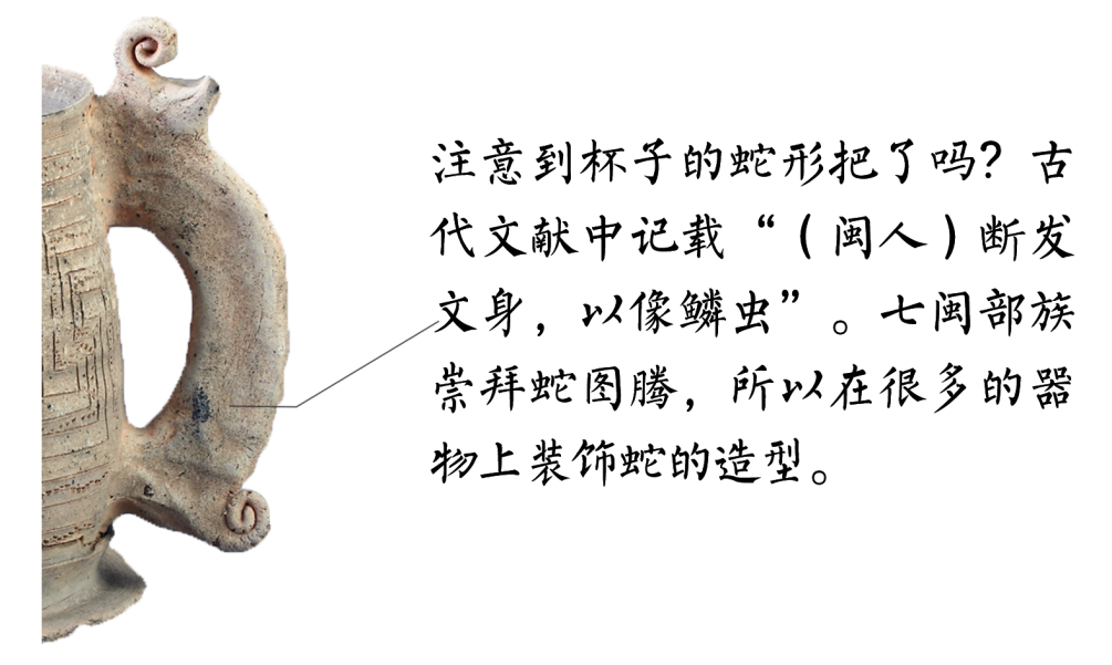这一时期,福建境内居住的各土著部落,在《周礼》中被称为“七闽”。“闽”代表的是“蛮荒虫蛇之地”,这是中国史籍中有关福建的最早叙述。《周礼》成书于战国,记载的是西周时期已发生和存在的史事,这说明“七闽”部落在西周或更早便已存在。利用与中原地区很有限的交流,“七闽”部落学习了中原的先进技术,所烧成的陶器,在器形和纹饰的装饰风格上带有强烈的青铜色彩。在福建地区出土的数量众多的印纹硬陶器中,以 1974 年闽侯黄土仑遗址出土的器物最为典型,包含了杯、罐、觚(gū)等多种器形,造型古朴,胎壁纤薄,整体的造型和纹饰带有浓烈的中原青铜器风格。