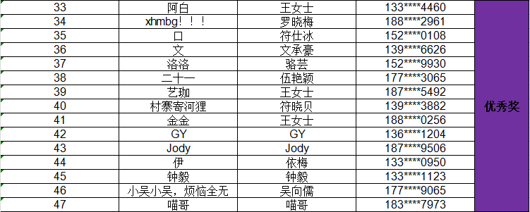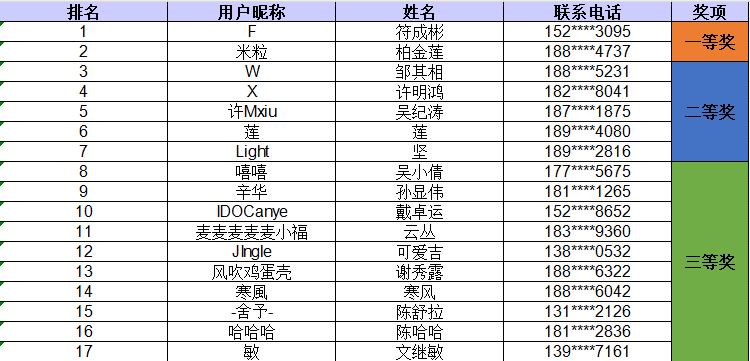 获奖名单