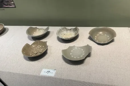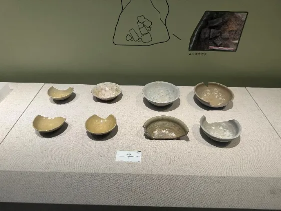 唐代不仅是封建时代的鼎盛时期,也是我国制瓷业的大发展时期,在此时期各地出现了不同风格的瓷窑体系,并形成了陶瓷史上“南青北白”的局面。本次展览中就有不少唐代瓷器出土,其中以瓷碗数量最多,大致可分属于越窑、长沙窑、德清窑。